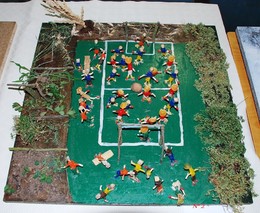 Lançamos um concurso, para classificação, que podem fazer via email ou comentário para saber quem obteve mais votos do público. As esculturas estão numeradas mas não são muito visíveis. A ordem é conforme estão dispostas. Assim a nº 1 é da cozinha, a nº 2 campo de futebol e assim sucessivamente. A mesma pessoa pode votar as vezes que entender. No final de semana divulgaremos os resultados e haverá diplomas de participação e quem sabe algum prémio.